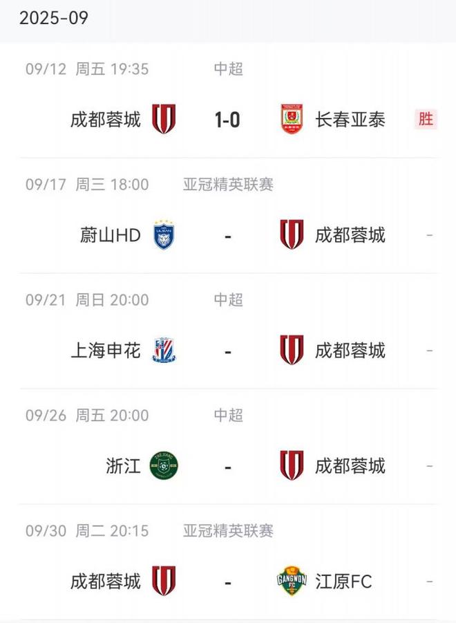 蓉城赛程↓