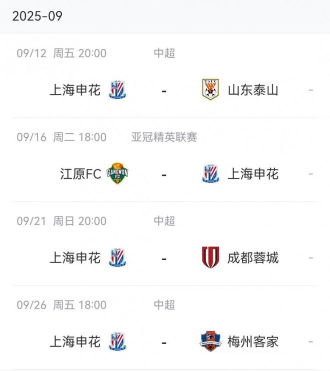 申花赛程↓
